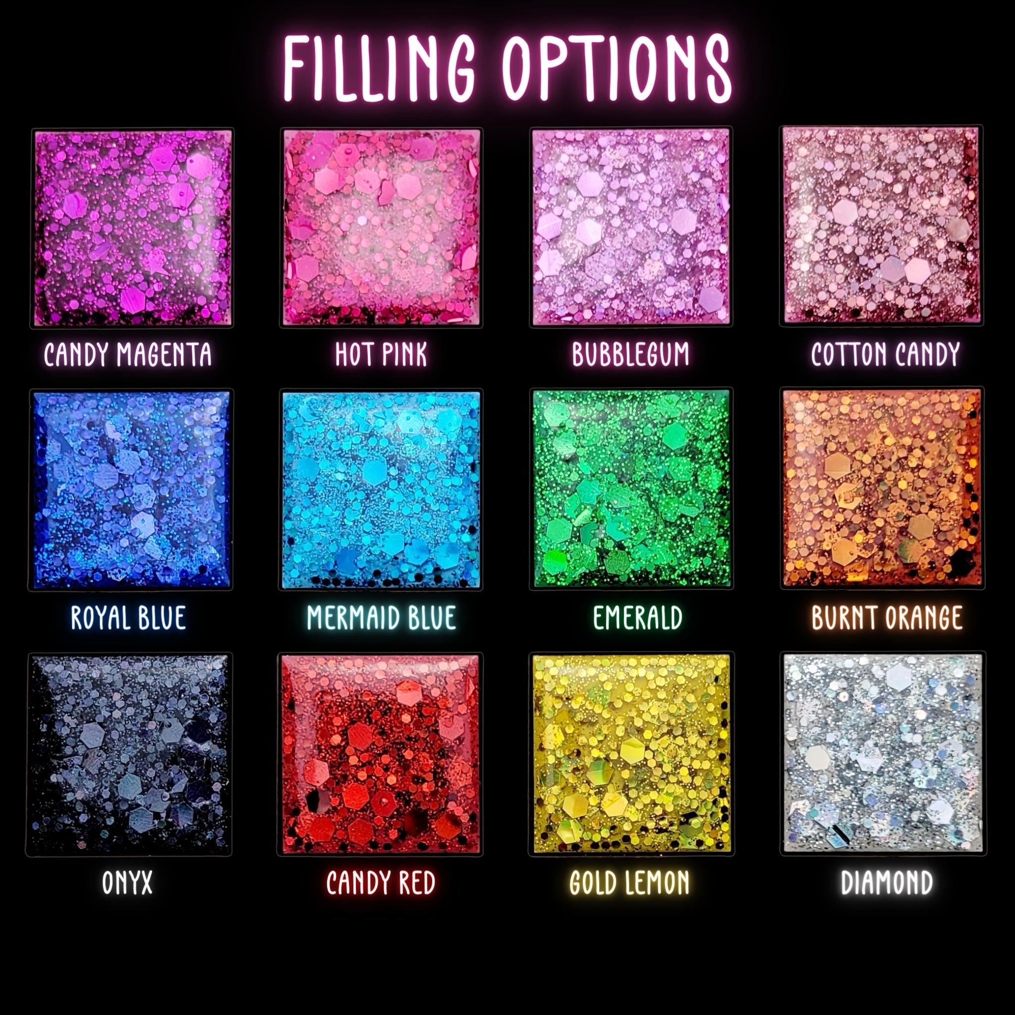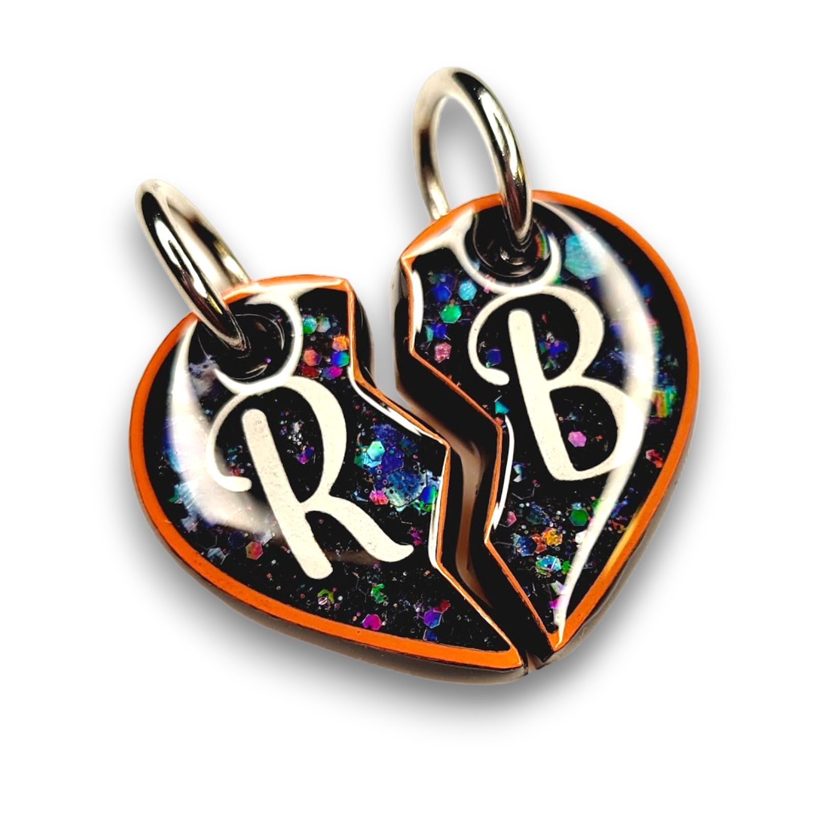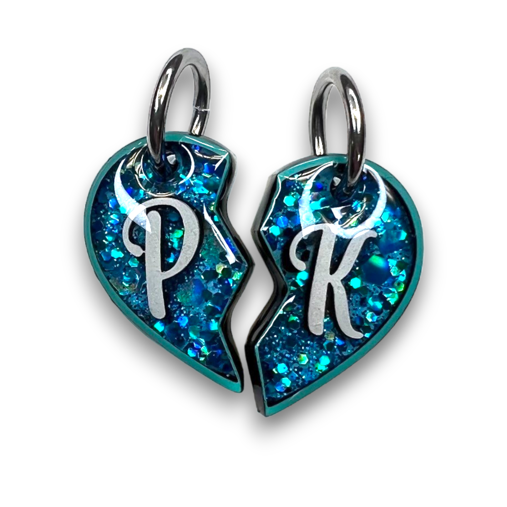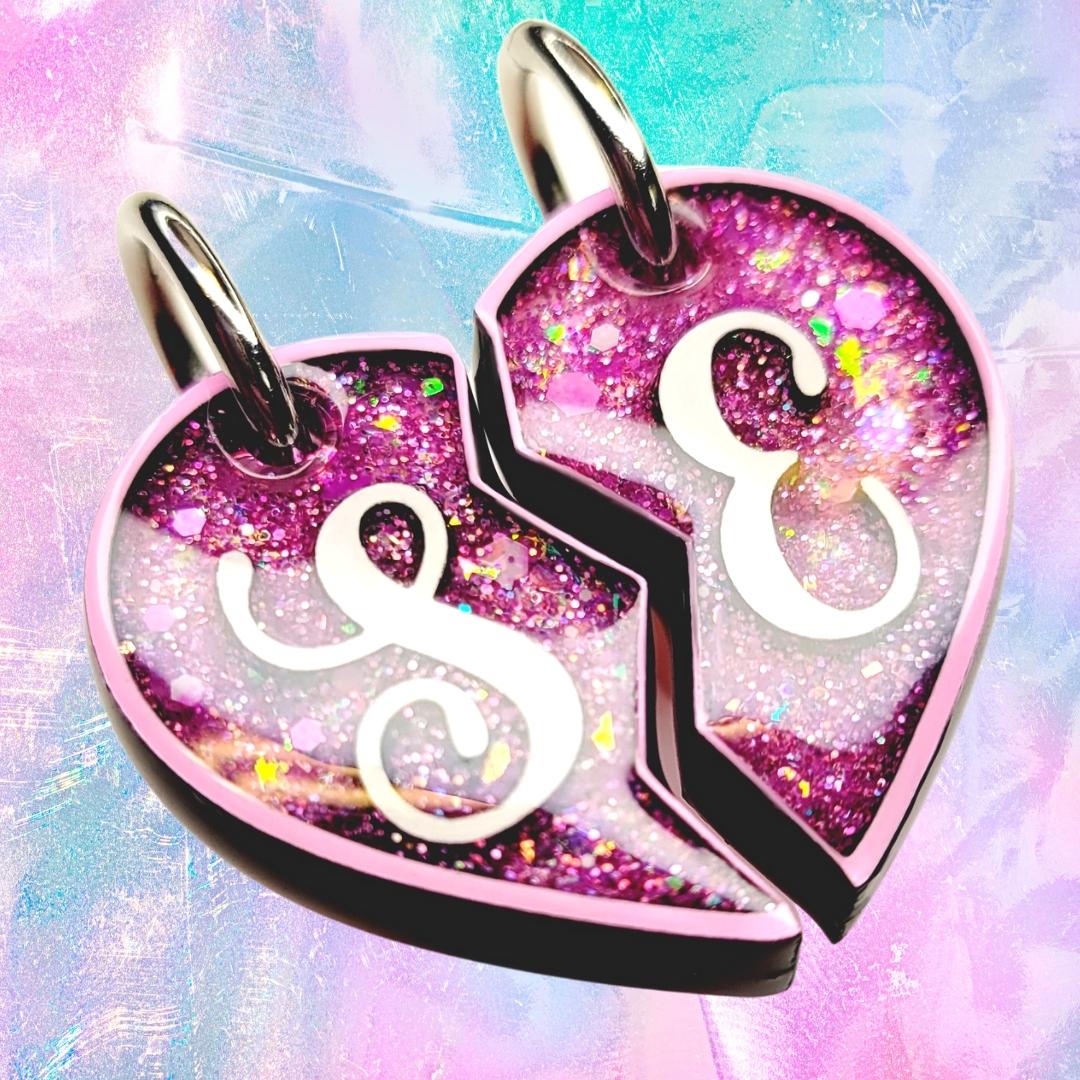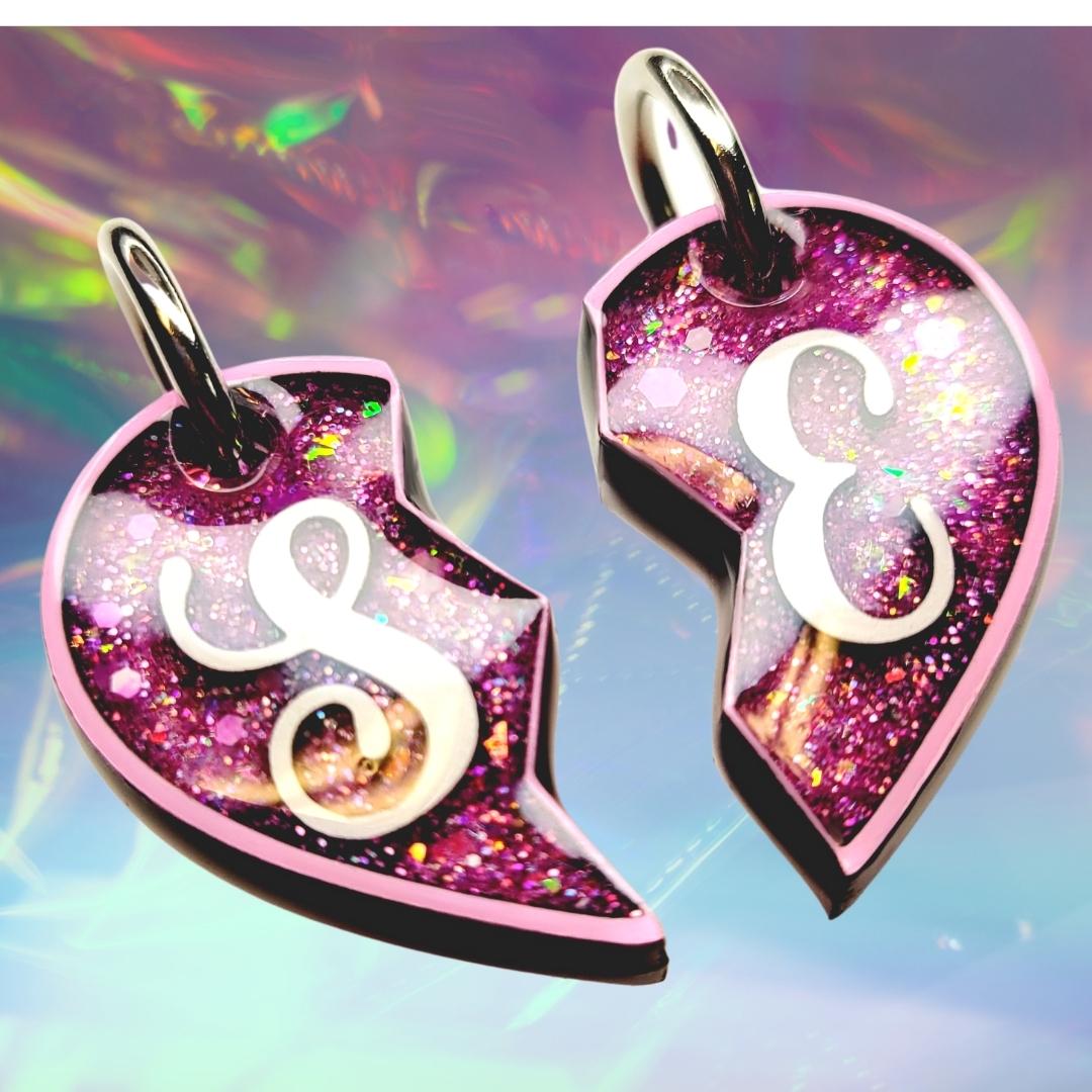 Our Poppin Premium Series are predesigned tags created in collaboration with VIP clients and social media partners. Sign up for our email list and follow our social media accounts for drop announcements! Poppin Premium Tags are approximately 1/4" thick- Please look at our tag size photo for full specs. Your pet's name will have a 3D effect and will POP! Each tag is hand painted and encased in UV Resin for durability and shine. Check out how they're made on our TikTok  & Instagram