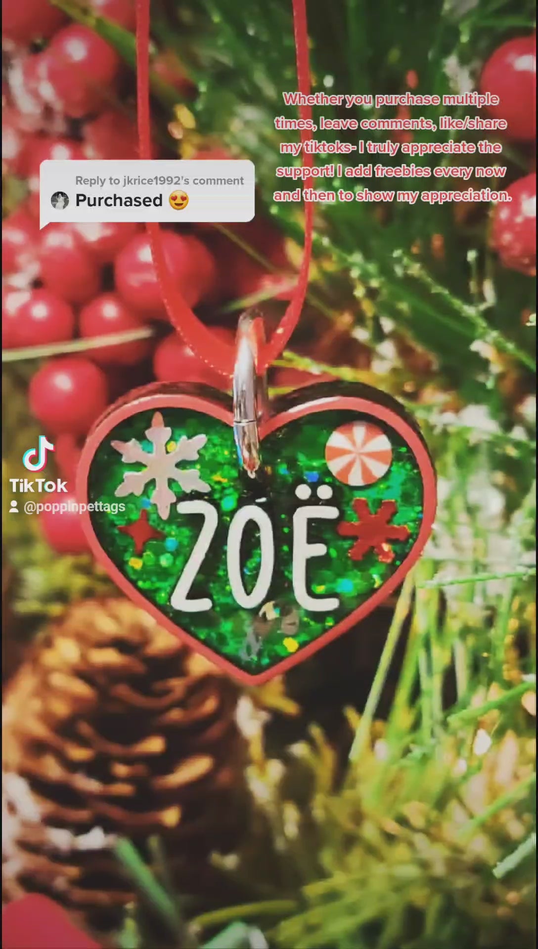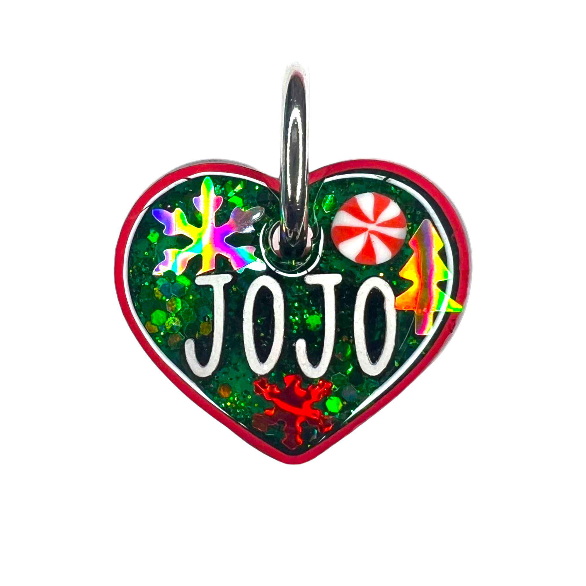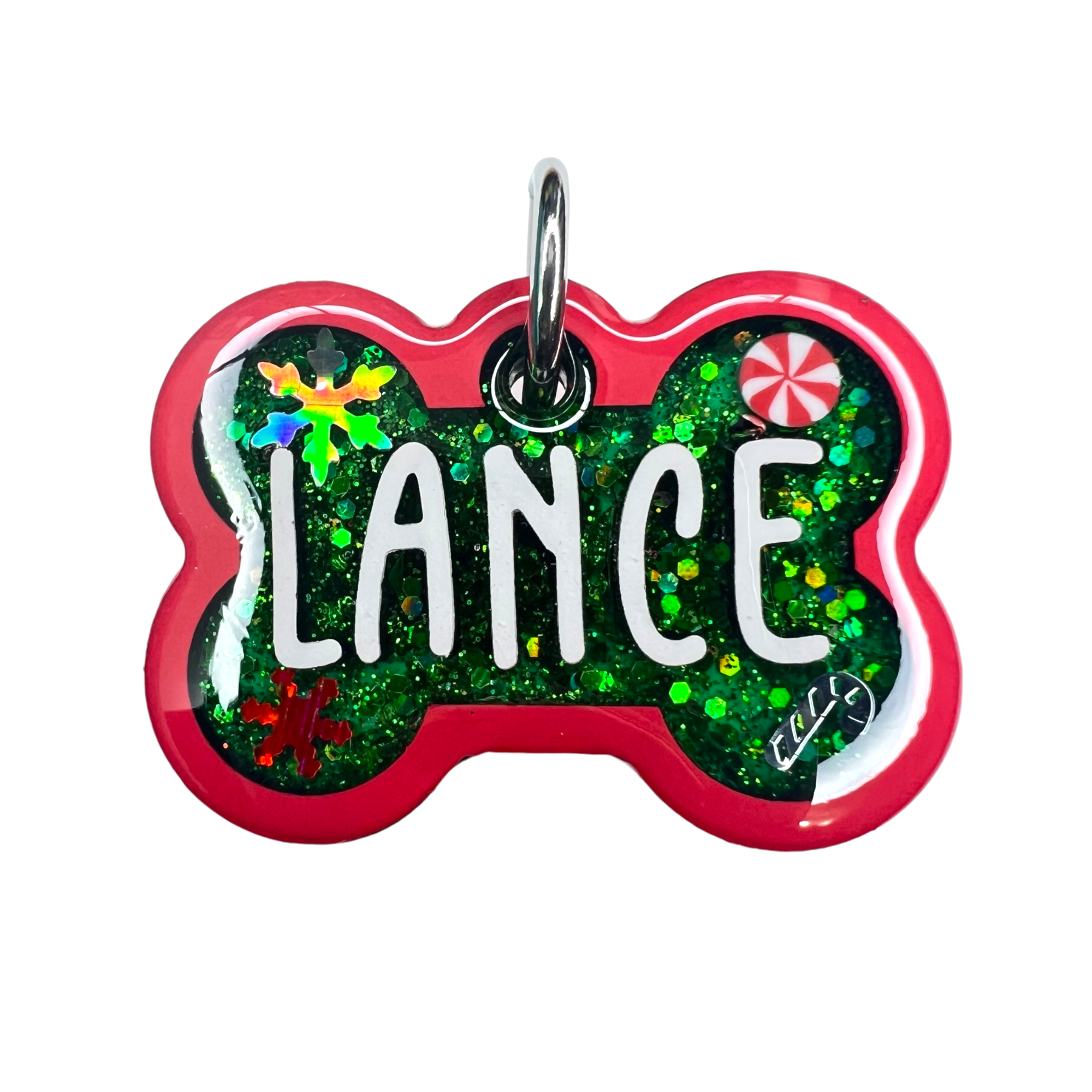 Our Poppin Premium Holiday Series are predesigned tags created in collaboration with VIP clients and social media partners. Sign up for our email list and follow our social media accounts for drop announcements! Poppin Premium Tags are approximately 1/4" thick- Please look at our tag size photo for full specs. Your pet's name will have a 3D effect and will POP! Each tag is hand painted and encased in UV Resin for durability and shine. Check out how they're made on our TikTok & Instagram!