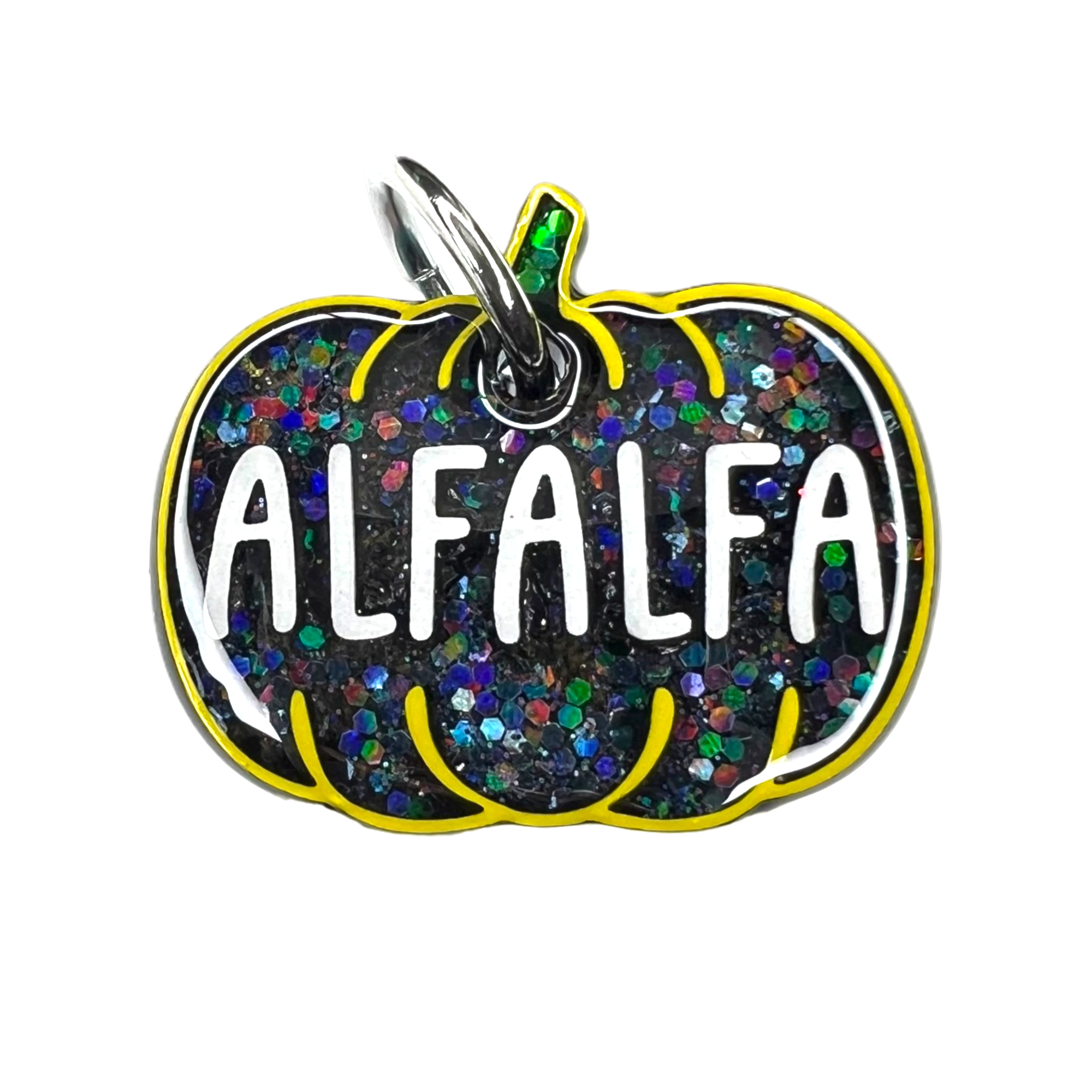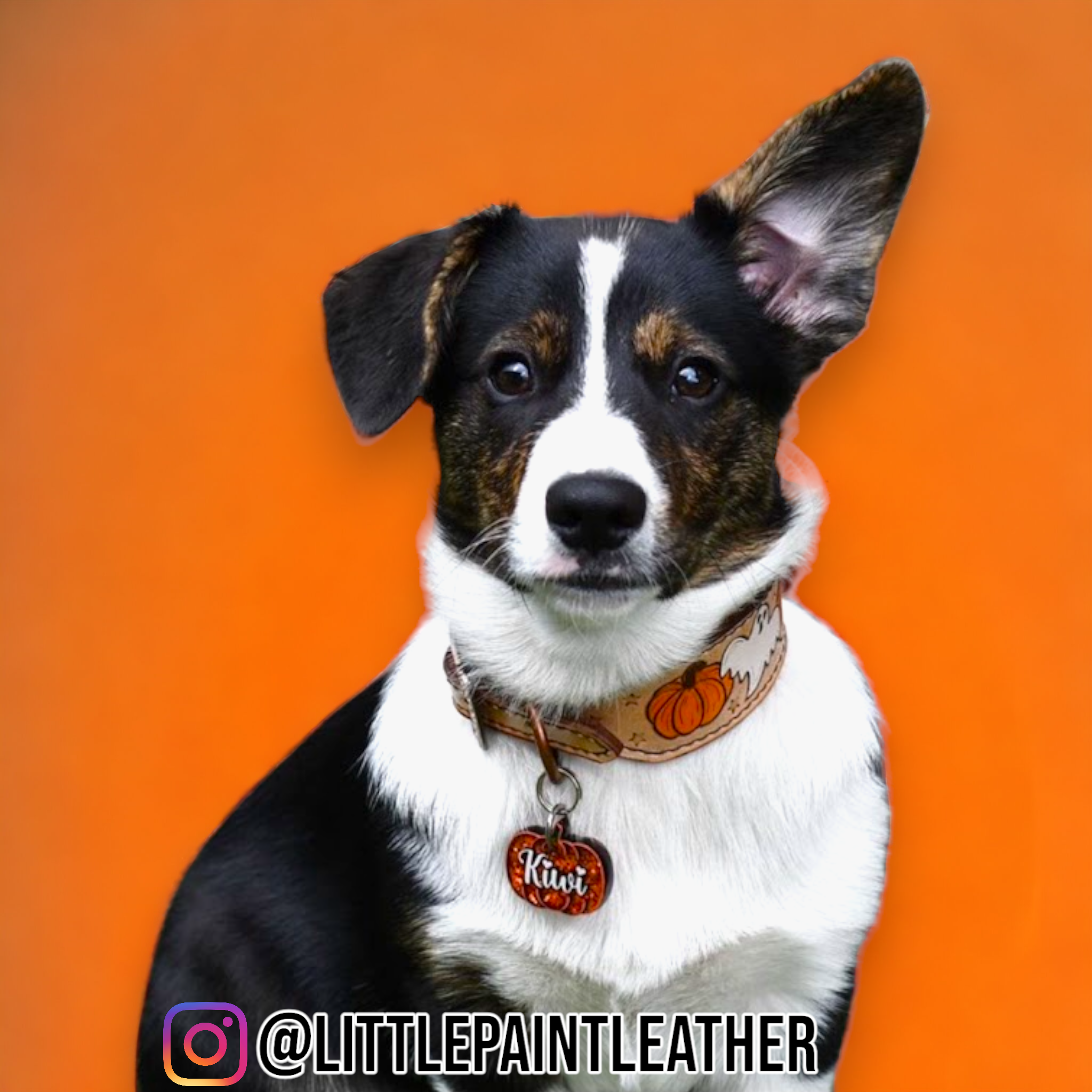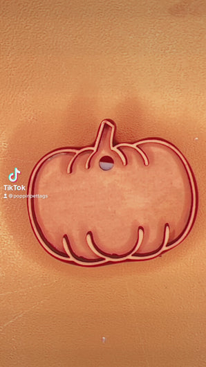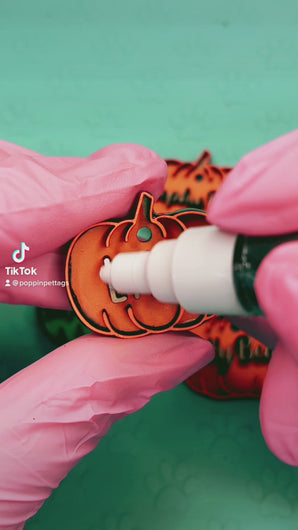 Our Poppin Premium Halloween Series are predesigned tags created in collaboration with VIP clients and social media partners. Sign up for our email list and follow our social media accounts for drop announcements! Poppin Premium Tags are approximately 1/4" thick- Please look at our tag size photo for full specs. Your pet's name will have a 3D effect and will POP! Each tag is hand painted and encased in UV Resin for durability and shine. Check out how they're made on our TikTok & Instagram!