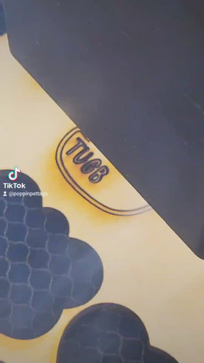 Our Poppin Premium Series are predesigned tags created in collaboration with VIP clients and social media partners. Sign up for our email list and follow our social media accounts for drop announcements! Poppin Premium Tags are approximately 1/4" thick- Please look at our tag size photo for full specs. Your pet's name will have a 3D effect and will POP! Each tag is hand painted and encased in UV Resin for durability and shine. Check out how they're made on our TikTok  & Instagram