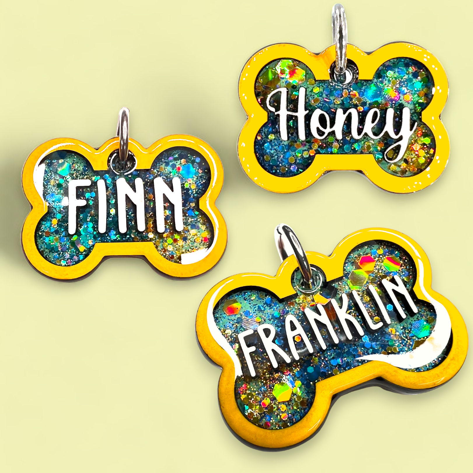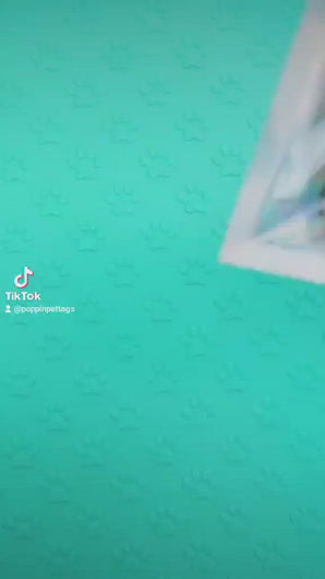 Our Poppin Premium Series are predesigned tags created in collaboration with VIP clients and social media partners. Scheduled drop schedules for new tags coming soon! Poppin Premium Tags are approximately 1/4" thick- Please look at our tag size photo for full specs. Your pet's name will have a 3D effect and will POP! Each tag is hand painted and encased in UV Resin for durability and shine. Check out how they're made on our TikTok & Instagram!