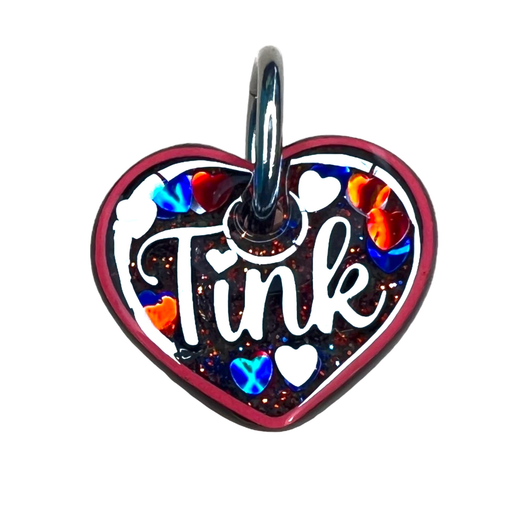 Our Poppin Premium Series are predesigned tags created in collaboration with VIP clients and social media partners. Scheduled drop schedules for new tags coming soon! Poppin Premium Tags are approximately 1/4" thick- Please look at our tag size photo for full specs. Your pet's name will have a 3D effect and will POP! Each tag is hand painted and encased in UV Resin for durability and shine. Check out how they're made on our TikTok  & Instagram